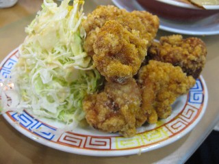 ラーメン、唐揚げ3個、漬物、ご飯の内容です。