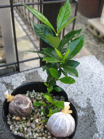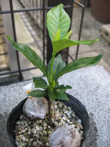 今年、挿し芽したクチナシが少し成長してきました。