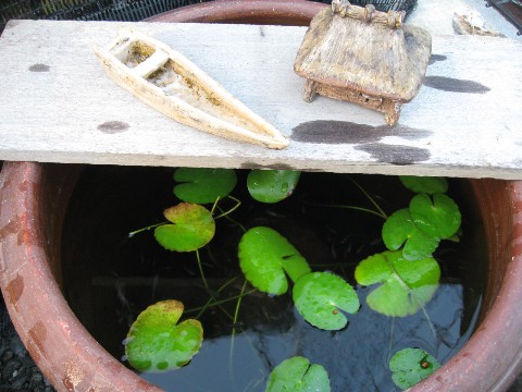昼寝、小品盆栽、メダカ、オオクワ