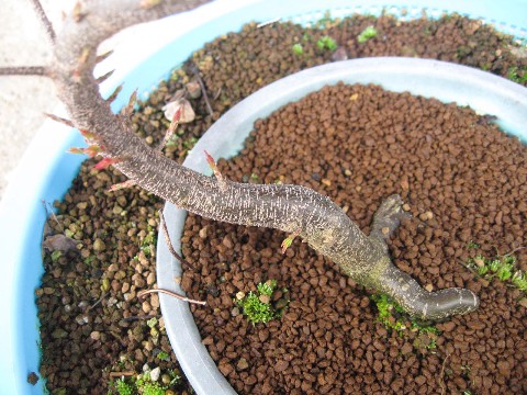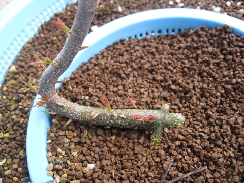 既に曲付けしてしまったものの、足元付近にはいろいろ芽が吹いてきています。