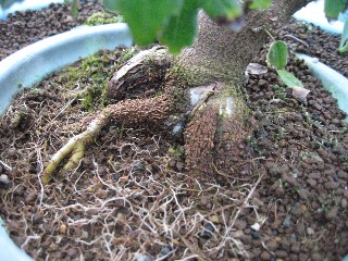 現段階では、幹を太らせることが主目的であって、いずれ何処かのポイントで取木をすることとなるので、根張りはハッキリ言ってどうでも良いのですが、