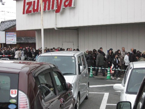 この行列はどうやら、このスーパーが販売する福袋に対する行列らしい。
