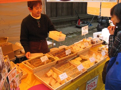 ↑飴ちゃんをの店。手作り市の店の多くが強気の価格設定の中、この店は良心的な値段でした。