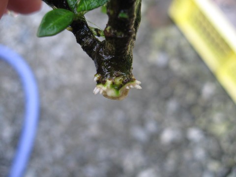 「梔子の場合は・・・太い幹を挿しても活着しますが・・・其の場合取り木の要領で幹の皮を剥いて・・・その下を鋸で切断して・・・挿すと良く活着しますよ。!!」(コメントより抜粋)