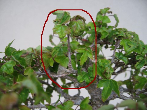 ちょっと直幹っぽいし細いけど、幹肌を見ると古くて葉性もまずまず良い感じのカエデです。