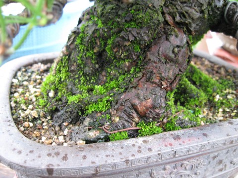 雑木類はちょこちょこ苔掃除してましたが、松柏類はサボリ気味です。