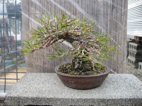 黒松はやはり模様樹が良いな・・・と思いますし、何より、この画像の黒松の樹形は半懸崖にしては中途半端な形に見えて、なかなかに難しい樹形に思えます。
