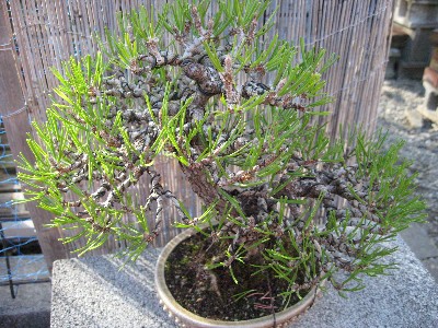 この黒松は盆栽としての評価は低いです。ただ、知り合いにこの樹を貰って、この樹で黒松一連の作業を練習してきたので僕にとっては思い入れの強い樹です。