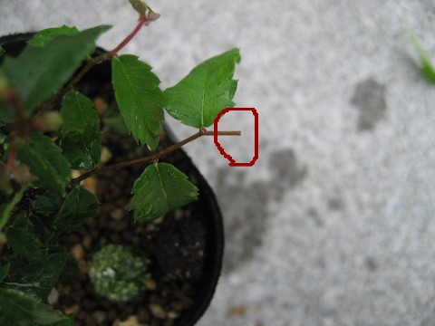 盆栽をしている人にとっては「そんなの誰でも知っている・・・」と思われるかもしれませんが、最近、僕が所属する会に入会した何人かの初心者の方は皆、ギリギリの部分で剪定していました。