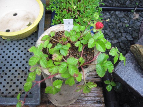 ↑斑入りヘビイチゴに実がなってました。