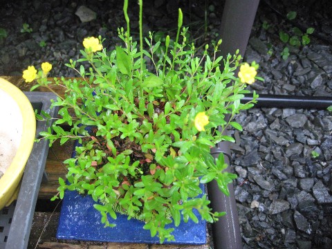↑こちらは黄色い花が咲いてます。瑠璃釉の陶板に黄花は良い感じです。