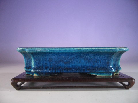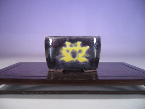 紫の釉薬をベースに中央部分は黄釉が施してあります。