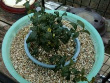 以前のエントリ「まだまだこれから・・・」で紹介した発泡植えの長寿梅ですが・・・
