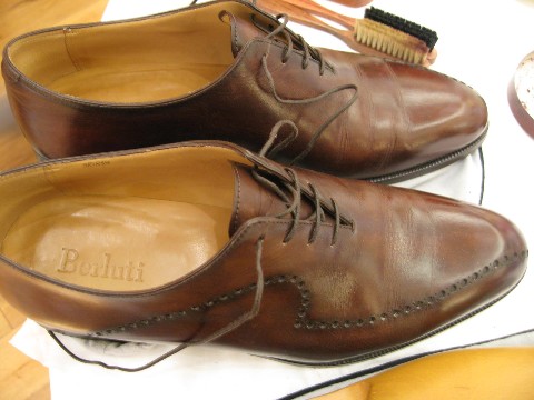 いろいろな方法を教わりながらの靴磨き。