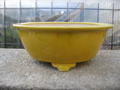 この鉢はリュウハイの丸鉢を参考に足を香葉氏のアレンジで雲脚にしていただきました。