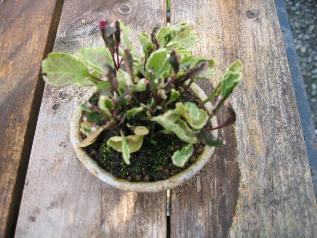 ↑夏場日陰で管理したチリメンジュウニヒトエ(鉢:高雄香葉丸)