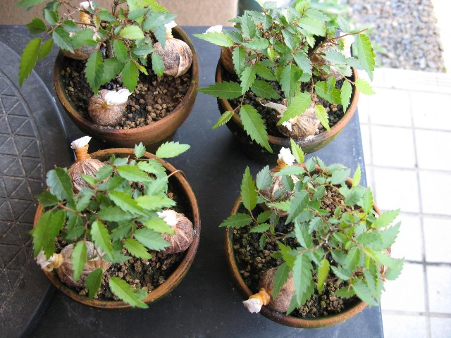 というわけで、今日は、実生や挿木素材のように、枝作りよりも太りを得ることが中心になっている樹の手入れを行いました。