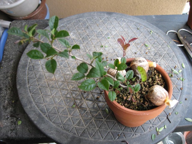 しかし、昨年、静岡の黒松作りの師匠から頂いた梅モドキの性が良いです。