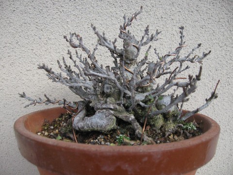 9/13のエントリ「再び素焼きへ」で画像UPした長寿梅の落葉後の姿です