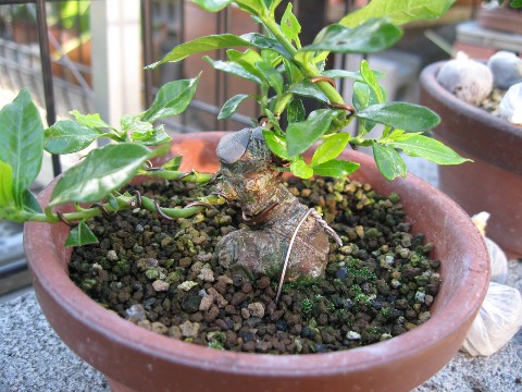入手して最初の植替えの時、まぁ、予想は出来たことなのですが、素焼きの深鉢の中には太根がいっぱい走ってました。